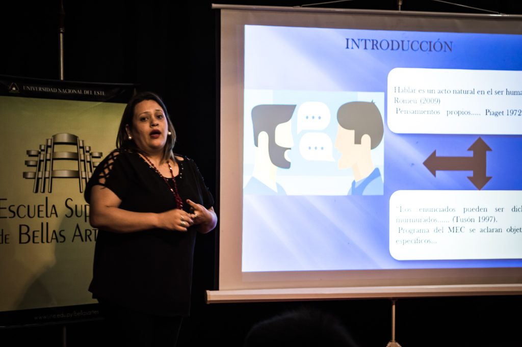 “Conocimientos y Hábitos Teatrales que poseen los Estudiantes Universitarios de la Escuela Superior de Bellas Artes de la Universidad Nacional del Este, en el año 2018 en comparación al Año 2015”, trabajo presentado por la alumna Nathalia Solange Méndez Flores y el alumno Luis Darío Fleitas Ramírez y que fue elaborado bajo la tutoría de la Prof. María Luisa Hermosilla.